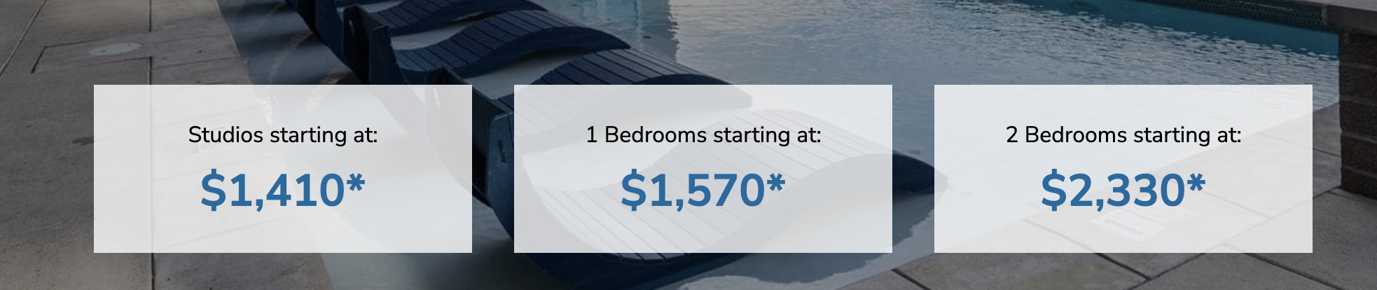 The example below shows how starting prices by bedroom count can appear when implemented outside of the main Spaces page.