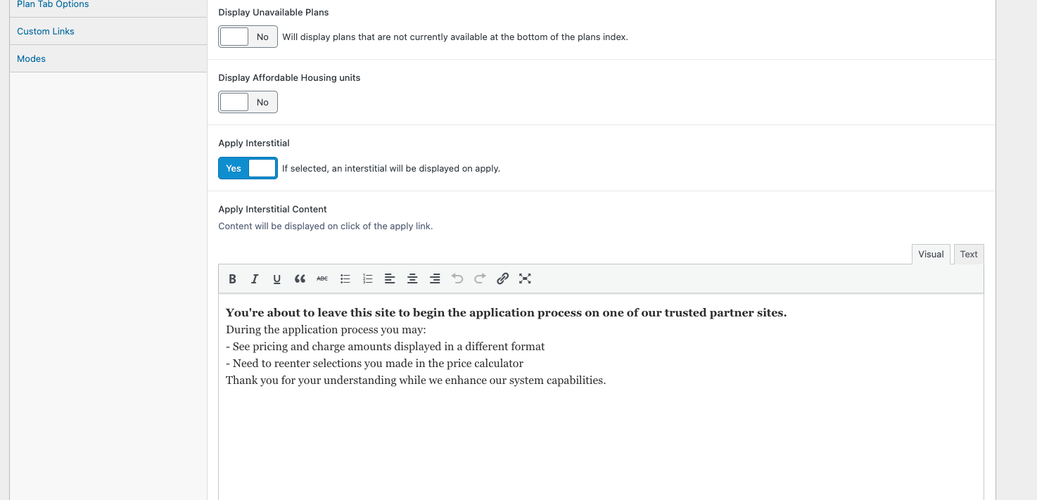 Displays a pop-up modal when a user clicks the Apply button before redirecting to the application site.